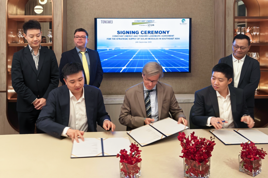 近日,通威與國際可再生能源開發商Constant Energy及泰國區域核心合作伙伴Sunday Solar Supply正式簽署三方戰略合作協議。此次合作將聚焦東南亞市場,共同推進高效太陽能組件的規模化應用,助力區域能源結構綠色轉型。